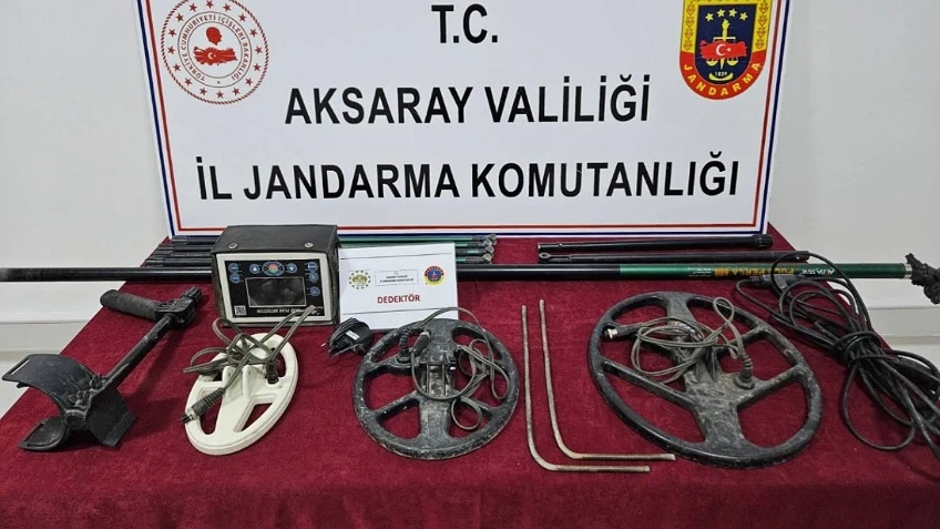 Konuya ilişkin yapılan açıklamada; "Aksaray İl Jandarma Komutanlığı sorumluluk bölgesinde, defineci olarak adlandırılan şahıslarca, bölgenin tarihi geçmişi nedeniyle gerçekleştirilen kaçak kazı olaylarının önlenmesi ve şüphelilerin adlî mercilere teslim edilmesini sağlamak amacıyla çalışmalara aralıksız devam edilmektedir. Bu kapsamda; Eskil Cumhuriyet Başsavcılığının koordinesinde Eskil İlçe Jandarma Komutanlığına bağlı Eşmekaya Jandarma Karakol Komutanlığı ekiplerince yapılan istihbari çalışmalar sonucunda Eskil İlçesi Eşmekaya Beldesi mülki sınırları içerisinde (1) şahsın kaçak kazı yaptığı bilgisinin elde edilmesi üzerine, söz konusu bölgeye düzenlenen operasyon sonucunda şüpheli şahıs kaçak kazı yaptığı esnada suçüstü yakalanmıştır. Olay yerinde yapılan kontrollerde; (1) adet dedektör ve görüntü ünitesi, (3) adet dedektör arama başlığı, (1) adet arama çubuğu, (1) adet ara bağlantı kablosu, (1) görüntü ünitesi ve dedektör taşıma yeleği, (1) adet şarj adaptörü, (2) adet bakır çubuk ve (6) adet L şeklinde alüminyum çubuk ele geçirilmiştir. Ele geçirilen malzemelere el konularak, şüpheli şahıs hakkında gerekli adli işlemlere başlanmıştır. Tarihi ve kültürel mirasımızı korumak amacıyla titiz ve gayretli çalışmalarımıza gece gündüz demeden aralıksız devam edilecektir." Denildi.
