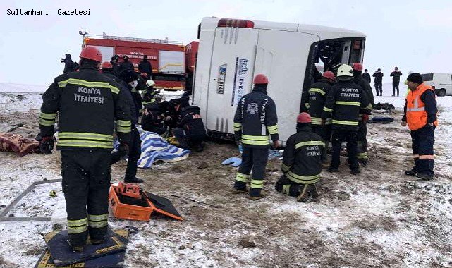 Alınan bilgili göre, İzmir'den Kapadokya'ya gezi için gidenleri taşıyan 48 J 8148 Mercedes marka tur otobüsü Konya - Aksaray karayolunun 47. kilometresinde tipi ve buzlanma nedeniyle kontrolden çıkarak şarampole devrildi. Kaza ihbarı üzerine olay yerine çok sayıda sağlık, polis jandarma, AFAD ve itfaiye ekipleri sevk edildi. Kaza yerine ulaşan itfaiye ve AFAD ekipleri kurtarma çalmalarına aşlarken, sağlık ekipleri de yaralılara ilk müdahaleyi yaptı.