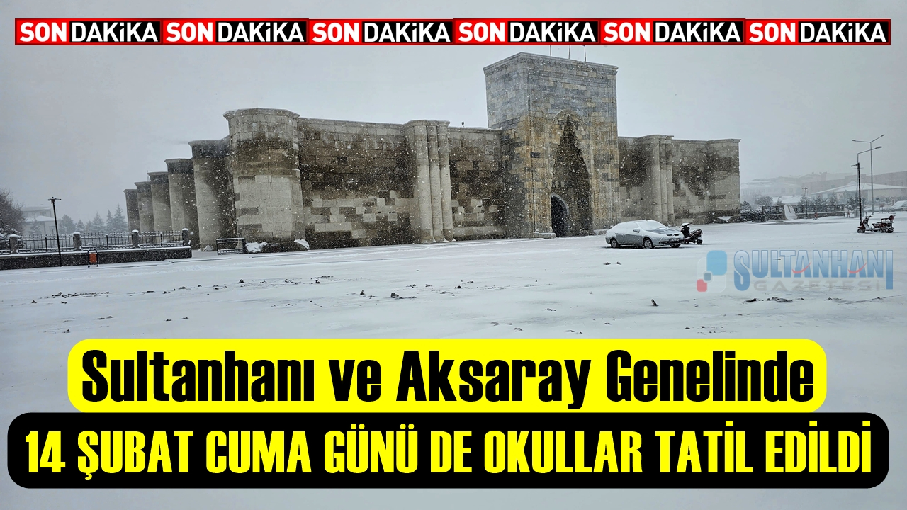 Aksaray Valiliği, yoğun kar yağışı, tipi ve buzlanma tehlikesi nedeniyle 14 Şubat 2025 Cuma günü de Sultanhanı ilçesi dahil kent genelindeki tüm resmi ve yaygın eğitim kurumları ile rehabilitasyon merkezlerinde eğitime bir gün ara verildiğini duyurdu.