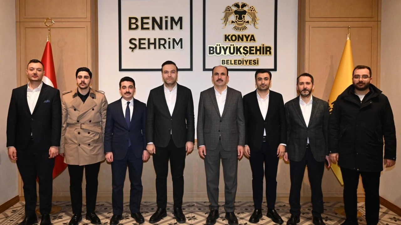 KONYA - Konya’da AK Parti İl Gençlik Kolları tarafından düzenlenen “Gençlik Sofrası” iftar programına katılmak için şehre gelen AK Parti Gençlik Kolları Genel Başkanı Yusuf İbiş, Konya Büyükşehir Belediye Başkanı Uğur İbrahim Altay’ı ziyaret etti. Büyükşehir Belediyesi Taş Bina’da gerçekleşen ziyarette Genel Başkan İbiş ve İl Gençlik Kolları Başkanı Kelek, Başkan Altay’a ev sahipliği için teşekkür etti.