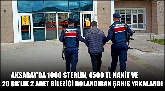 AKSARAY'DA 1000 STERLİN, 4500 TL NAKİT VE 25 GR’LIK 2 ADET BİLEZİĞİ DOLANDIRAN ŞAHIS YAKALANDI
