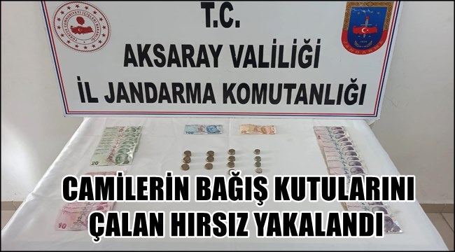 Konuya ilişkin yapılan açıklamada; "Aksaray İli Merkez İlçe Bağlıkaya Kasabası camii ve Ortaköy İlçesi Balcı Mahallesi camiinde bulunan Bağış kutularını çalan şahısların yakalanmasına yönelik başlatılan kapsamlı çalışmalar sonucunda, camilerden hırsızlık yapan bir şüpheli tespit edilmiş ve İl Jandarma Komutanlığı ekiplerince Aksaray İli Organize Sanayi Bölgesinde çaldığı paralar ile birlikte yakalanmıştır.