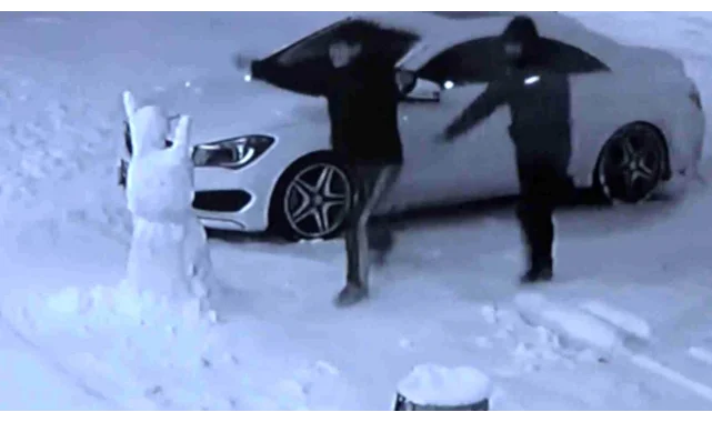 Aksaray'da E-90 Karayolunda bulunan bir mobilya mağazası yetkilileri mağaza önüne eğlence amaçlı kardan adam yaptı. Akşam saatlerinde mağaza önünden geçen 2 genç kardan adamı fark ederek oyun havası eşliğinde oynayarak kardan adamın önüne geldi. Kısa bir süre oynayan gençler daha sonra kardan adamın sağına ve soluna geçerek kardan adamla halay çekti. Ardından kardan adamı yıkan gençler olay yerinden ayrılırken, gençlerin gülümseten görüntüleri mağazanın güvenlik kamerasına yansıdı.