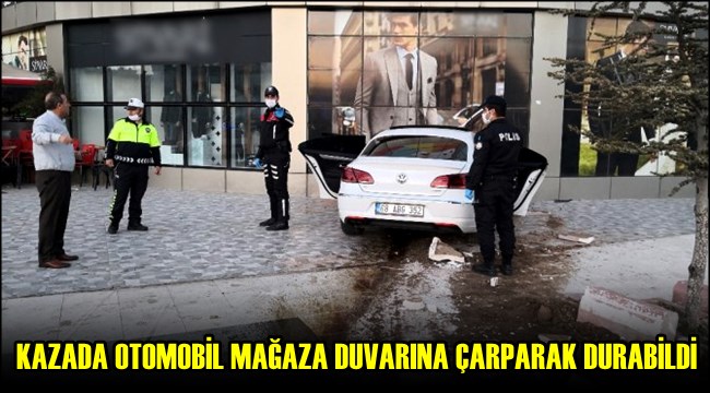 AKSARAY'DAKİ KAZADA OTOMOBİL MAĞAZA DUVARINA ÇARPARAK DURABİLDİ
