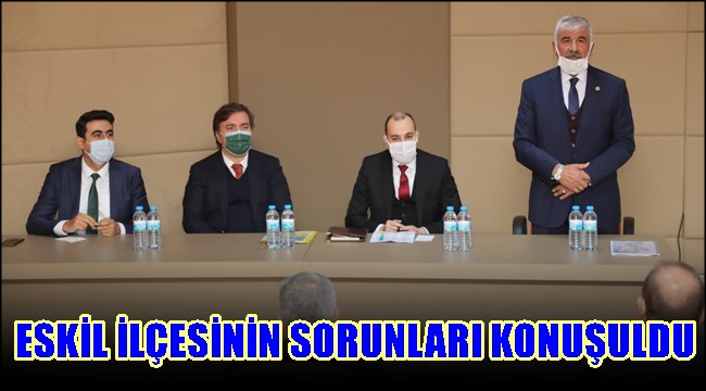 Vali Aydoğdu daha sonra Eskil Cumhuriyet İlkokulu Konferans Salonunda ilçeye bağlı köy ve mahalle muhtarlarının katıldığı toplantıda sorunları dinledi.