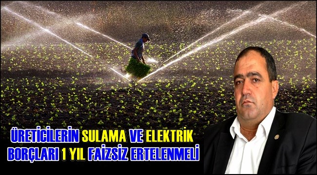 Üreticilerimizin sulama ve elektrik borçları bir yıl süreyle faizsiz olarak ertelenmelidir." dedi.