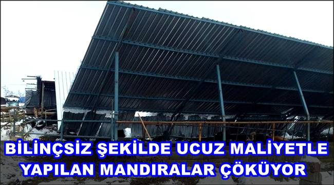 Son yıllarda Kontrolsuz şekilde Mahalle aralarına kadar yapılan ve hiçbir denetim ve pilanı bulunmayan ucuz maaliyetlerle yapılan bazı mandıralar etkili kar yağışı nedeniyle yağan Karın ağırlığına dayanamayıp çöktü.