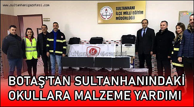 Sultanhanı Botaş Doğalgaz Depolama Tesisi Yetkilileri tarafından Sultanhanı ilçesinde eğitim veren okullarda kullanılmak üzere Malzeme yardımında bulunuldu. Sultanhanı İlçe Milli eğitim Müdürlüğüne Teslim edilen bilgisayar, yazıcı ve projeksiyon cihazlarını için İlçe Milli eğitim Müdürü Hamza Ağır Botaş Yetkililerine Teşekkür ederek "Okullarımıza dağıtımını yapmak üzere Botaş yetkililerinden bilgisayar, yazıcı ve projeksiyon cihazlarını teslim aldık. Botaş'a ve emeği geçenlere teşekkür ederiz." dedi.