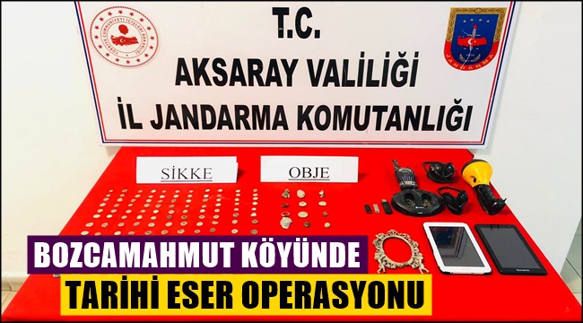 Jandarma tarafında Eskil ilçesi Bozcamahmut köyünde eski eser kaçakçılığı yapan A.U, İ.S, R.S. ve B.T. isimli dört şüpheli tespit edildi, şüphelilerin üzerinde, araçlarında ve evlerinde yapılan aramada Bizans dönemine ait olduğu değerlendiren 152 adet sikke/obje (143 adet sikke, 2 adet yüzük, 7 adet obje) ile birlikte bir adet elektronik tablet, üç adet flash bellek, iki adet detektör kulağı ve bir adet kobra el telsizi ele geçirildi.