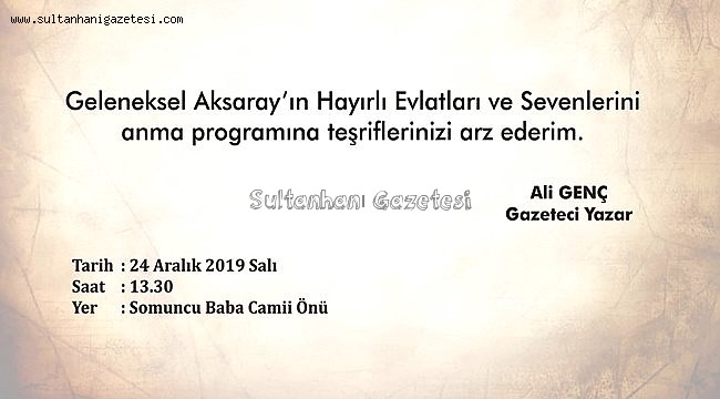 Bu günde 1984’den itibaren 25 yıldır aralıksız olarak sürdürülen Aksaray lı olup ta hizmetleriyle birimizin bin olmasını sağlayanlarla, ilimizden olmamalarına rağmen görevleri esnasında Aksaray’a hizmet edenlerin bir kısmı Ervah Kabristanlığındaki kabirleri başında, bir kısmı ise burada yapılacak dua ile gıyaplarında anılacaklar.
