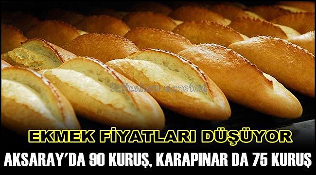 EKMEK FİYATLARI DÜŞTÜ, AKSARAY'DA 90 KURUŞ, KARAPINAR'DA 75 KURUŞ