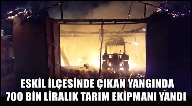 ESKİL İLÇESİNDE ÇIKAN YANGINDA 700 BİN LİRALIK TARIM EKİPMANI YANDI