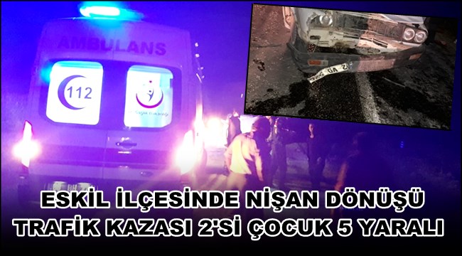 ESKİL İLÇESİNDE NİŞAN DÖNÜŞÜ TRAFİK KAZASI 2'Sİ ÇOCUK 5 YARALI