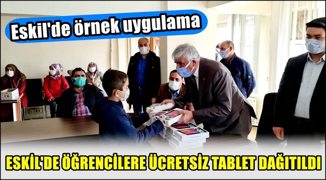 Eskil Belediyesinin öncülüğünde maddi durumu zayıf öğrencilere eğitimlerini devam ettirebilmeleri için tablet kampanyası başlatılmıştı. Eskil Belediyesi, Sivil Toplum Kuruluşları ve hayırseverlerin yardımlarıyla toplanan 150 tablet öğrencilere dağıtılmaya başlandı. Eskil Belediyesinde yapılan programa, Ak Parti Eskil ilçe başkanı Ali Mutlu, Süt Üreticileri birlik başkanı Necip Çeçen, Eskil Ziraat Odası başkanı İbrahim Kırlı, Ticaret Borsası Eskil Temsilcisi Gürsel Keskin ve meclis üyeleri katıldı.