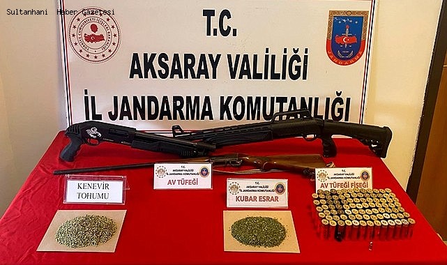 Bu kapsamda; Eskil Cumhuriyet Savcılığının talimatları doğrultusunda, Aksaray İl Jandarma Komutanlığına bağlı İstihbarat Şube Müdürlüğü ve Eskil İlçe Jandarma Komutanlığı ekiplerince yapılan istihbari çalışmalar sonucunda, Eskil İlçesi mülki sınırları içerisinde Uyuşturucu veya Uyarıcı Madde İmal ve Ticareti yaptığı tespit edilen A.A., S.A., C.O., B.K. ve C.O. isimli şahısların ev ve eklentilerinde yapılan aramalarda; (100) gram kubar esrar, (200) gram kenevir tohumu, (3) adet av tüfeği, (90) adet av tüfeği fişeği ele geçirilmiştir.