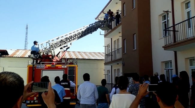 Eskil’de öğrenciler derslerde akademik olarak eğitim almanın yanı sıra, farklı pek çok alanda da eğitimlerden geçiyor. Sigara bağımlılığı, yurt hijyeni, uyuşturucu tuzakları gibi konularda uzmanlardan dersler alan öğrenciler, yangın hususuna dair de bir çalışmaya katıldı. Eskil İtfaiye ekibinin desteği ile düzenlenen tatbikatta yangın öncesinde, sırasında ve sonrasında yapılması gerekenler anlatıldı. Yangın tüpü kullanımı ve panik yönetimine dair açıklamaların da yapıldığı etkinlikte, mizansen gereği yüksek katta mahsur kalan bir öğrenci kurtarıldı.