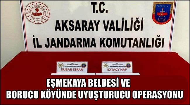 Konu ile ilgili yapılan istihbari çalışmalar sonucunda, Aksaray Cumhuriyet Başsavcılığı koordinesinde, Aksaray İl Jandarma Komutanlığı sorumluluk sahasında iki farklı olayda; Merkez ilçesi Borucu köyünde ve Eskil ilçesi Eşmekaya beldesinde 20 Mart 2021 günü uyuşturucu imal ve ticareti yapan R.Ç., Y.E.D., F.C. ve A.G. isimli şüphelilerin üzerlerinde, evlerinde ve araçlarında yapılan aramada, 2 gr metamfatamin, 15 gr kubar esrar, 34 adet extacy uyuşturucu hap ve 1 adet uyuşturucu kullanma aparatı ele geçirilmiştir.