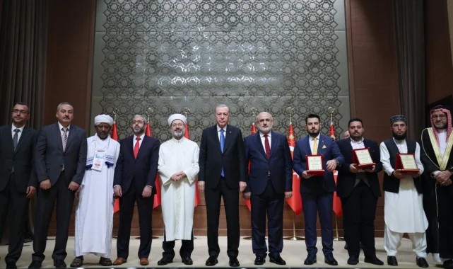 Daha sonra 9. Uluslararası Hafızlık Yarışmasında dereceye giren Bangladeş'ten Muaz Mahmud, İran'dan Milad Asheghi Khasraghi ve Malezya'dan Muhammed Daniel Hazıq Bin Haswadi ile 9. Uluslararası Kur'an-ı Kerimi Güzel Okuma Yarışması'nda derece alan Türkiye'den Muhammed Sizcan, İran'dan Seyedparsa Angoshtan ve Afganistan'dan Abdul Rab Ayoubi, ödüllerini Cumhurbaşkanı Erdoğan'ın elinden aldı.