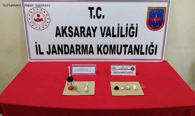 Bu kapsamda; Aksaray Cumhuriyet Başsavcılığının talimatları doğrultusunda, Aksaray İl Jandarma Komutanlığına bağlı İstihbarat Şube Müdürlüğü ve Sultanhanı İlçe Jandarma Komutanlığı ekiplerince yapılan istihbari çalışmalar sonucunda, Sultanhanı İlçesi mülki sınırları içerisinde Uyuşturucu veya Uyarıcı Madde İmal ve Ticareti yaptığı tespit edilen T. T. ve M. K. isimli şahısların üzerinde ve kullandıkları araçta yapılan aramalarda; (30) gram metamfetamin ve (2) adet uyuşturucu madde kullanma aparatı ele geçirilmiştir.