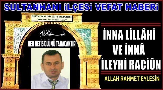 AÇIKLAMA....: Kanser hastalığına yenik düşen Merhumun cenazesi Yarın (Pazartesi) öğle namazına müteakip Kılınacak Cenaze namazı sonrası Sultanhanı mezarlığında defnedilecektir.