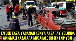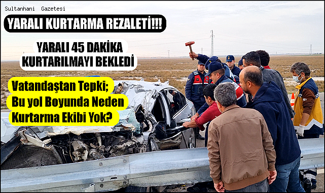 Geçtiğimiz Hafta sonu Konya Aksaray Yolu Sultanhanı ilçesi Yakınlarında yaşanan trafik kazasında Yaralıyı Kurtarma rezaleti yaşandı. Kazada 45 Dakika boyunca Sıkıştıgı yerden kurtarılmak için Bekleyen yaralı nedeniyle, Kaza mahallindeki Vatandaşlar Teşhizatlı Kurtarma ekibinin olmamasına büyük tepki gösterdi.