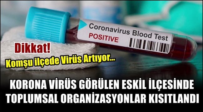 KORONA VİRÜS GÖRÜLEN ESKİL İLÇESİNDE TOPLUMSAL ORGANİZASYONLAR KISITLANDI