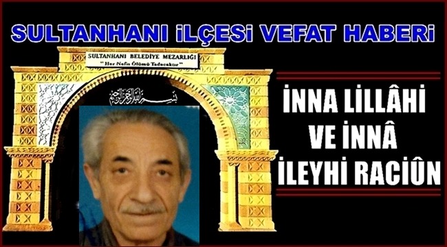 AÇIKLAMA..........: Sultanhanı İlçemizden Olan ve İstanbul'da ikamet eden Merhumun cenazesi Bugün öğle namazına müteakip Aksaray Somuncu Baba Camiinde kılınacak Cenaze namazı sonrası Ervah Mezarlığında defnedilecek.