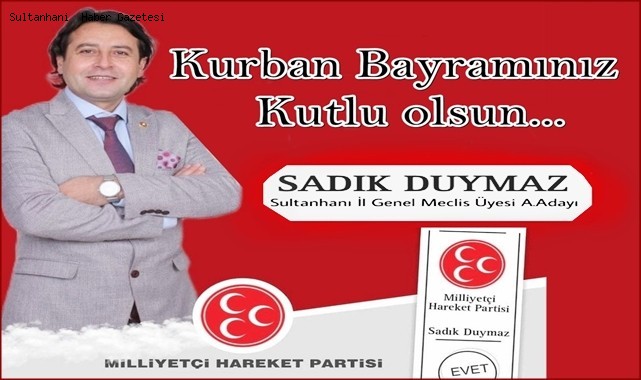 MİLLİYETÇİ HAREKET PARTİSİ İL GENEL MECLİSİ ÜYESİ ve ADAYI SADIK DUYMAZ TÜM SULTANHANI HALKI ve İSLAM ALEMİNİN KURBAN BAYRAMINI KUTLAR SAĞLIK ve ESENLİKLER DİLER...