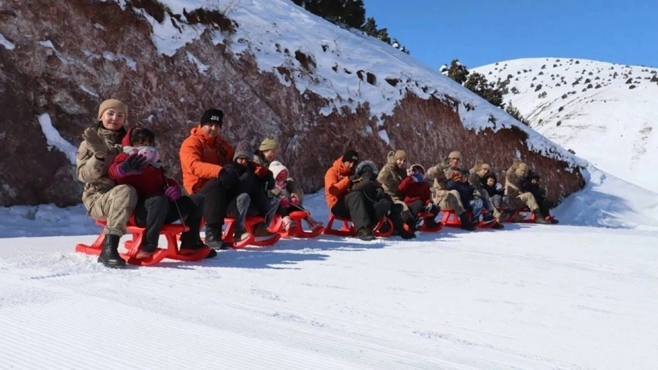 Erzincan İl Jandarma Komutanlığı Aile İçi Şiddetle Mücadele ve Çocuk Kısım Amirliği tarafından düzenlenen etkinlikte çocuklar Ergan Dağında kızak keyfi yaşadı.