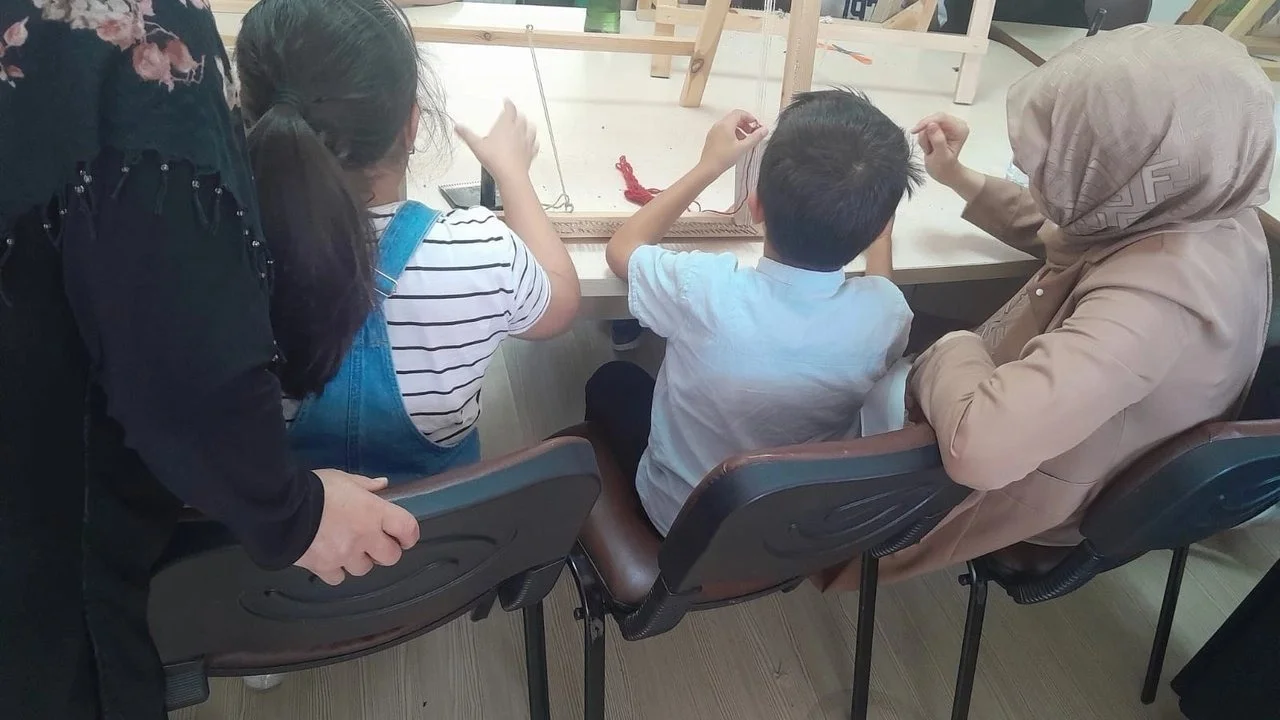 10-12 yaş arası 6 çocuğun katıldığı etkinlikte misafir çocuklara Halı Dokuma Eğitmeni Fatma Turgut ve kursiyerler tarafından kilim dokuma bileklik yapımı gösterilerek hediyeler takdim edildi.