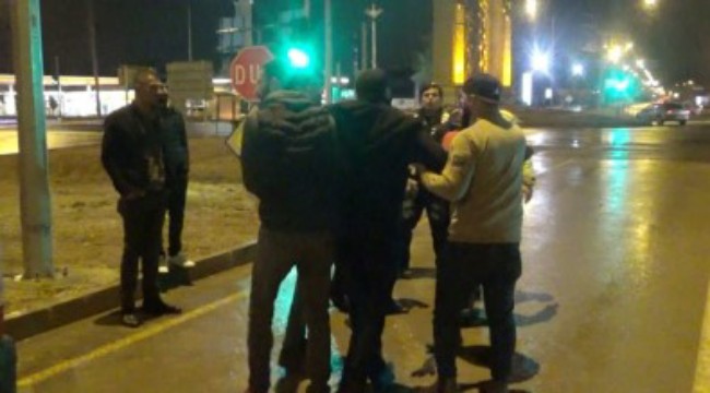 ÖNCE KAZA YAPTILAR SONRA YOL ORTASINDA KAVGA ETTİLER