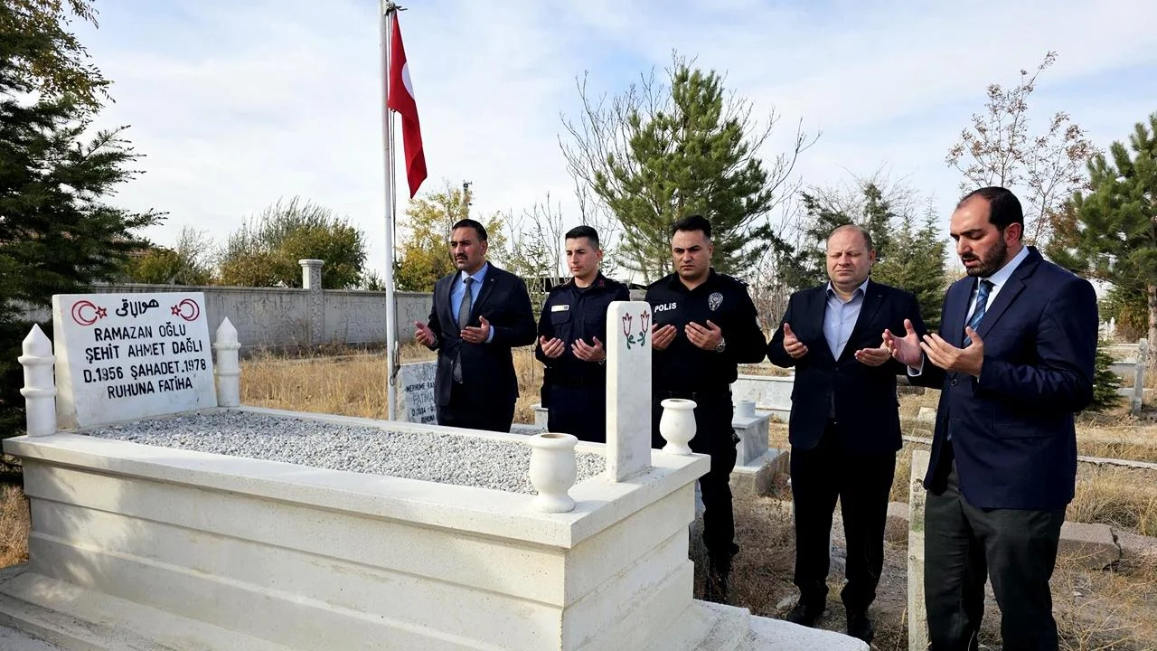 Sultanhanı Kaymakamı Bilal Göksun, kurum müdürleri ile birlikte, aziz şehidimiz Ahmet Dağlı’nın şehadet yıldönümü dolayısıyla şehidimizin kabrini ziyaret etti. Ziyarette, Kur’an-ı Kerim tilaveti yapılarak dualar edildi.