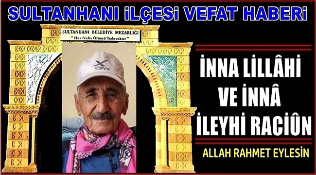 AÇIKLAMA..........: Merhumun Cenazesi Bugün Öğle Namazına Müteakip Bekirağa Camiinde Kılınacak Cenaze namazı Sonrasında Sultanhanı Merzarlığında defnedilecektir.