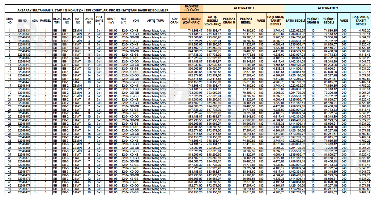 Sultanhanı ilçesinde Geçtiğimiz yıl Yapımına başlanan ve Tamamlanma Noktasına gelen Sultanhanı 3. Etap Toki Konutlarında Daire Fiyatları ve Ödeme Planı açıklandı. Sosyal Konut Projesi kapsamında yapılan Konutların Aylık Taksit Fiyatlarında ve ödeme Plannında 2 Ayrı Altarnatif sunuldu. Bu Tabloya göre 180 ve 240 ay vade şenekleri ile farklı ödeme planı sunulurken 2+1 Dairelerde Bazı Aylık Taksitler 4.883 Lirayı bulurken Bu Fiyatlar 3+1 de 5.829 Liraları gördü.