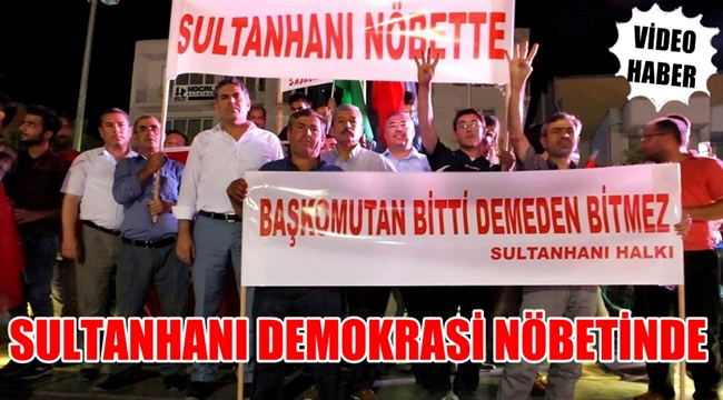 Sultanhanı Belediye başkanı Fahri Solak ve ultanhanı halkı Aksaray Hükümet meydanında Demokrasi nöbeti tuttular. Dev Türk Bayrağı açarak Meydanda toplanan Binlerce kişi ile Tekbirler getirip Vatanımıza Sahip çıktığımızı haykırdılar.