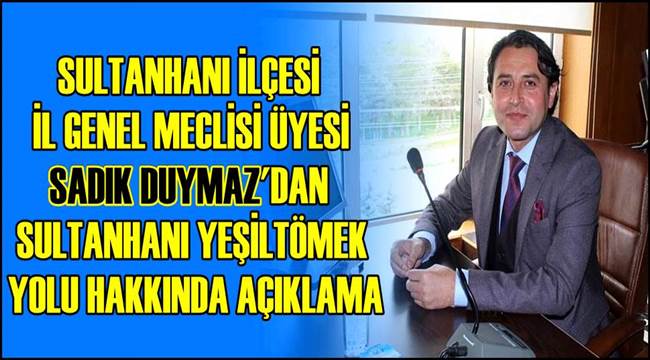 SULTANHANI İL GENEL MECLİSİ ÜYESİ SADIK DUYMAZ'DAN SULTANHANI YEŞİLTÖMEK YOLU HAKKINDA AÇIKLAMA