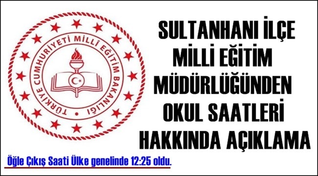 SULTANHANI İLÇE MİLLİ EĞİTİM MÜDÜRLÜĞÜNDEN OKUL SAATLERİ HAKKINDA AÇIKLAMA