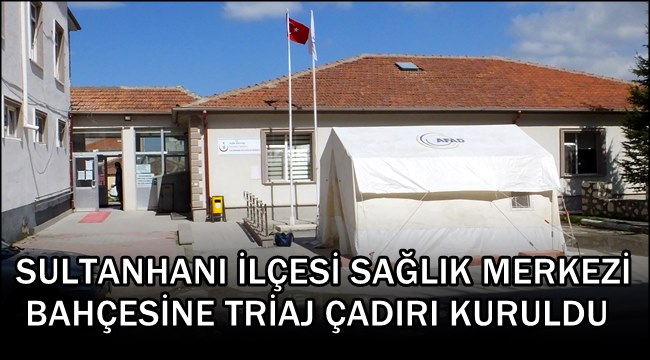 Ülkemizde Koronavirüs (COVİD-19) hastalığının yayılmaya devam etmesi nedeniyle Sağlık Bakanlığı tarafından hastalığın yayılmasına engel olmak amacıyla çeşitli koruma ve kontrol önlemleri alınıyor. Bu önlemler Kapsamında Sultanhanı İlçesi Enteğre Sağlık merkezi Bahçesine Triaj Çadırı kuruldı.