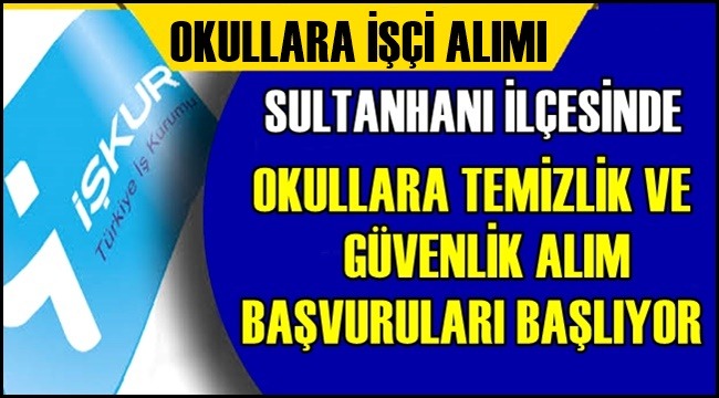 Sultanhanı ilçesinde 16 Temizlik görevlisi ve 8 Özel güvenlik alınacaktır.