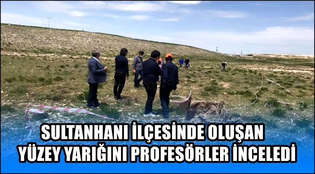 Aksaray iline bağlı Sultanhanı ilçemizde meydana gelen uzunluğu 250- 300 metre, derinliği 4 metre ve genişliği 3 metre olan yüzey yarığı Konya Teknik Üniversitesi Obruk Araştırma ve Gözlem Merkezi hocaları Prof. Dr. Fetullah Arık, Prof. Dr. Yaşar Eren, Doç. Dr. Arif Delikan ve Dr. Öğr. Gör. Güler Göçmez ile Aksaray AFAD İl Müdürü Cezmi Türkmen, Jeoloji Müh. Erkan Yıldırım, Jeoloji Müh. Ramazan Cansu ve Jeofizik Müh. İbrahim Çetin ile Konya AFAD İl Müdürlüğünden Jeoloji Müh. Şükrü Arslan ve Harita Mühendisi Cemalettin Güllüoğlu, Jeoloji Mühendisleri Odası Aksaray İl Temsilcisi Tayfun Aydın ve Sultanhanı Belediyesi ekiplerinden oluşan heyetle birlikte incelemesi yapıldı.