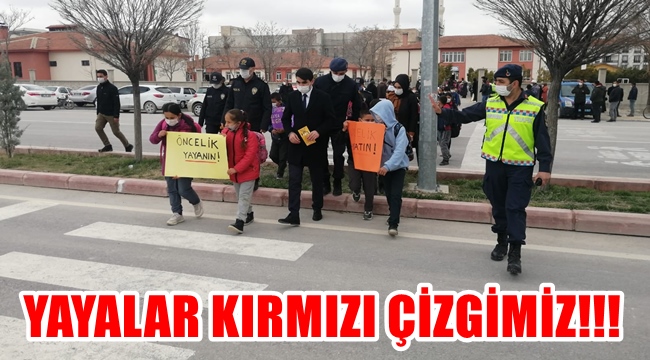 Bu hedefler doğrultusunda 2021 yılı süresince de bu trendin devam ettirilerek yürütülecek faaliyet ve destekleyici kampanyaların etkisini arttırmak, yaya ve okul geçitleri öncesinde sürücülerin yer/zemin işaretlemeleriyle bir kez daha uyarılarak dikkatlerini daha üst düzeye çıkarmak, bu alanlarda yavaşlamalarını ve yayalara ilk geçiş hakkının vermelerini sağlamak amacıyla 30 Mart 2021 Salı günü 12.00-15.00 saatleri arasında tüm illerimizde olduğu gibi İlimizde de eş zamanlı olarak Devletin Tüm Unsurları ile farkındalık eyleminde olduğunu göstermek amacıyla “Önce Yaya Uygulaması” kapsamında “Yaya Önceliği Kırmızı Çizgimizdir” etkinlikleri icra edilecektir.