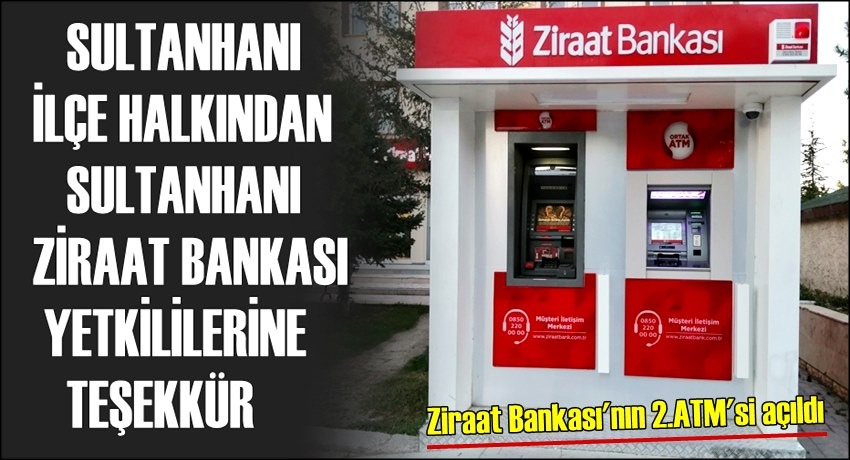 Sultanhanı ilçesi Ziraat Bankası Yetkilileri Sultanhanı ilçe halkımızın bu yöndeki Talebini hemen değerlendirerek Ziraat bankası Şubesi önündeki ATM Cihazını ikileştirdi ve ilçe halkımızın daha kolay ve çabuk hizmet almasını sağladı.
