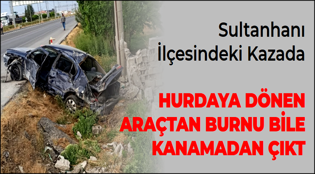 Sultanhanı İlçesindeki Kazada Hurdaya Dönen Araçtan Burnu Bile Kanamadan Çıktı