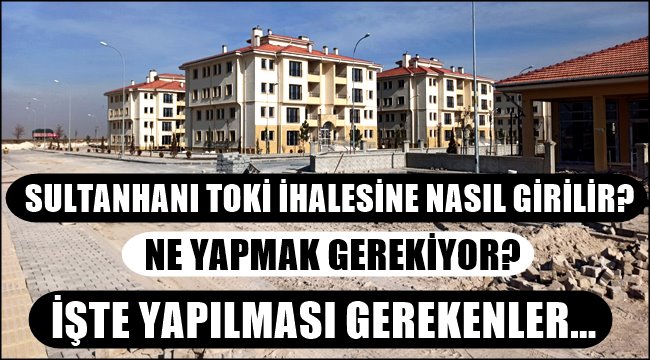 Sultanhanı Ziraat Bankası Teminat Yatırılması sonrasında Toki İnternet sitesinde bulunan İhale Şartnamesini bilgisayara indirip Yazıcıda çıktısını alıp Gerekli alanları doldurarak Bankadan alınan Alınan Dekont, Kimlik ve doldurulan Şartnameyi "[email protected]" mail adresine gönderilecek ve ardından 0212 608 15 00 numaralı telefon aranarak mailin doğru ve eksiz bir şekilde ulaşıp ulaşmadığı teyit ettirilecek.