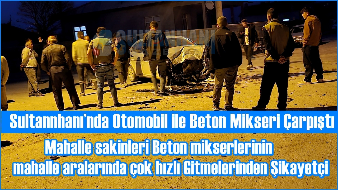 Kaza akşam saatlerinde Sultanhanı Selçuk Mahallesi Osmanlı Caddesi ile Selçuklu Caddesinin bulunduğu kavşakta meydana geldi. Edinilen bilgiye göre 07 ECA 90 Plakalı Otomobil, 42 AHT 310 Plakalı Beton mikseri ile kavşakta Çarpıştı.