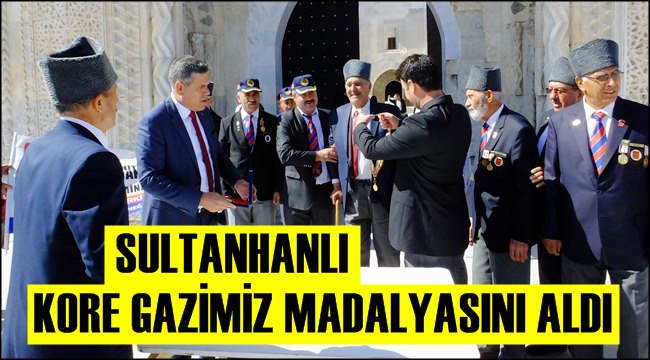 Kore Gazisi Ömer Oymak’a Kore Gazilik Madalyasını Sultanhanı Kaymakamı Murat Karasu, Belediye Başkanı Fahri Solak ve Gaziler derneği Başkanı Mustafa Dağ birlikte takdim ettiler.
