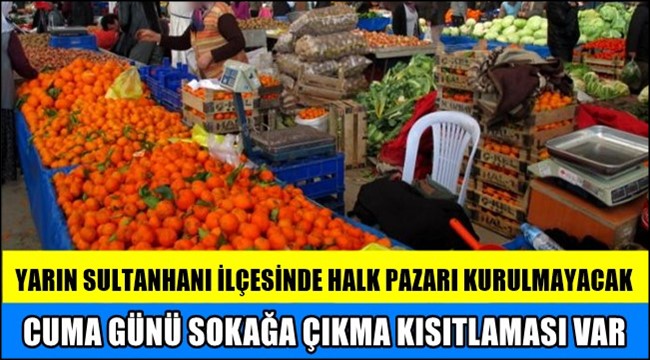 YARIN SULTANHANI İLÇESİNDE HALK PAZARI KURULMAYACAK, CUMA GÜNÜ SOKAĞA ÇIKMA KISITLAMASI VAR